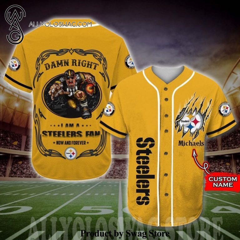 9 Effortlessly Cool Baseball Jersey Outfit Ideas [Top-selling] Custom Pittsburgh Steelers Mascot Damn Right Full Printed Baseball Jersey