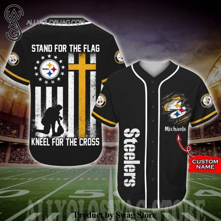 NOTE: [Top-selling] Custom Pittsburgh Steelers Stand For The Flag Kneel For The Cross Full Printed Baseball Jersey – Black
