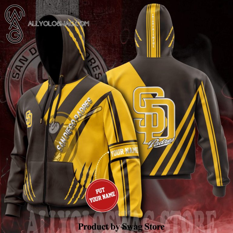 [Top-selling] Custom San Diego Padres Claw Full Printing Zip-Up Hoodie – Brown Yellow