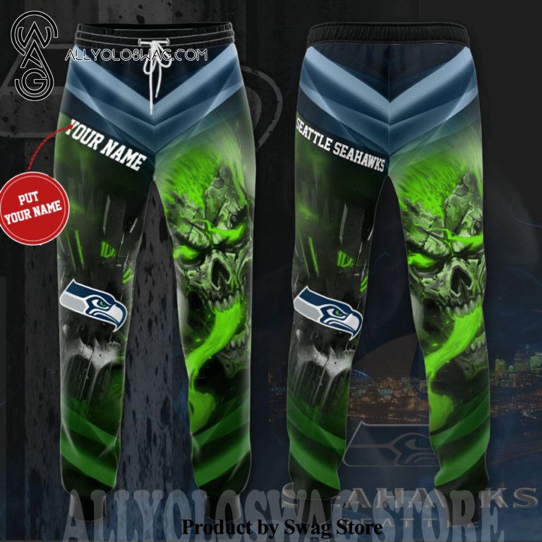 Some details about our product [Top-selling] Custom Seattle Seahawks Smoky Green Skull Full Printing Casual Unisex Sweatpants