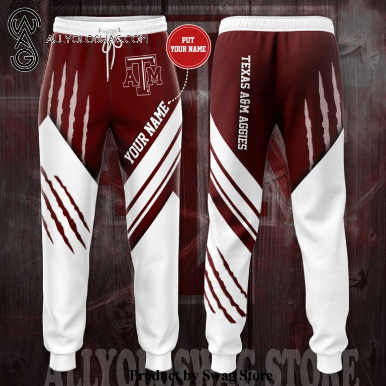 Some details about our product [Top-selling] Custom Texas A&M Aggies Claws Full Printing Casual Unisex Sweatpants – White Garnet