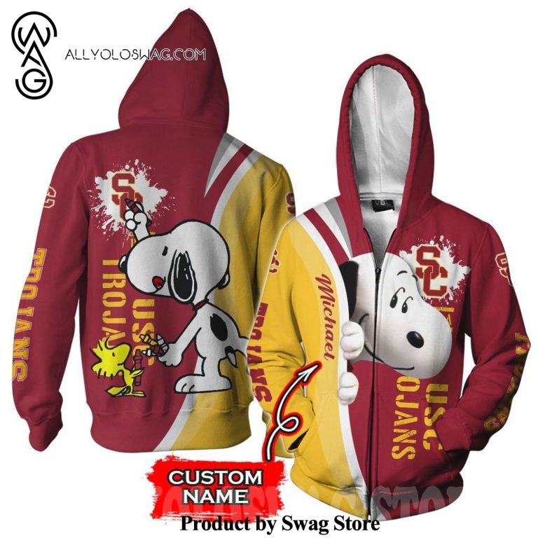 NOTE: [Top-selling] Custom USC Trojans Snoopy Full Printing Zip Hoodie – Yellow Red