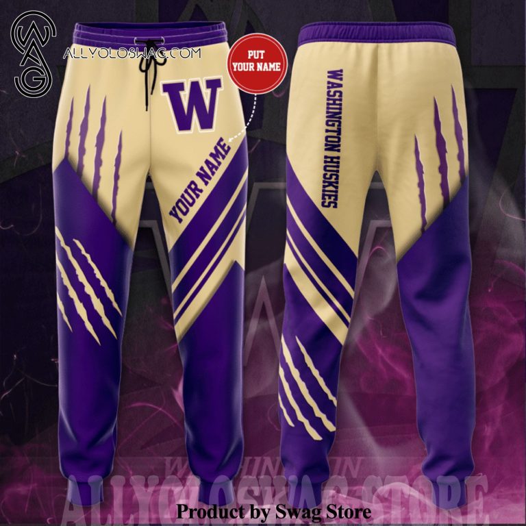 NOTE: [Top-selling] Custom Washington Huskies Claws Full Printing Casual Unisex Sweatpants – Purple Yellow