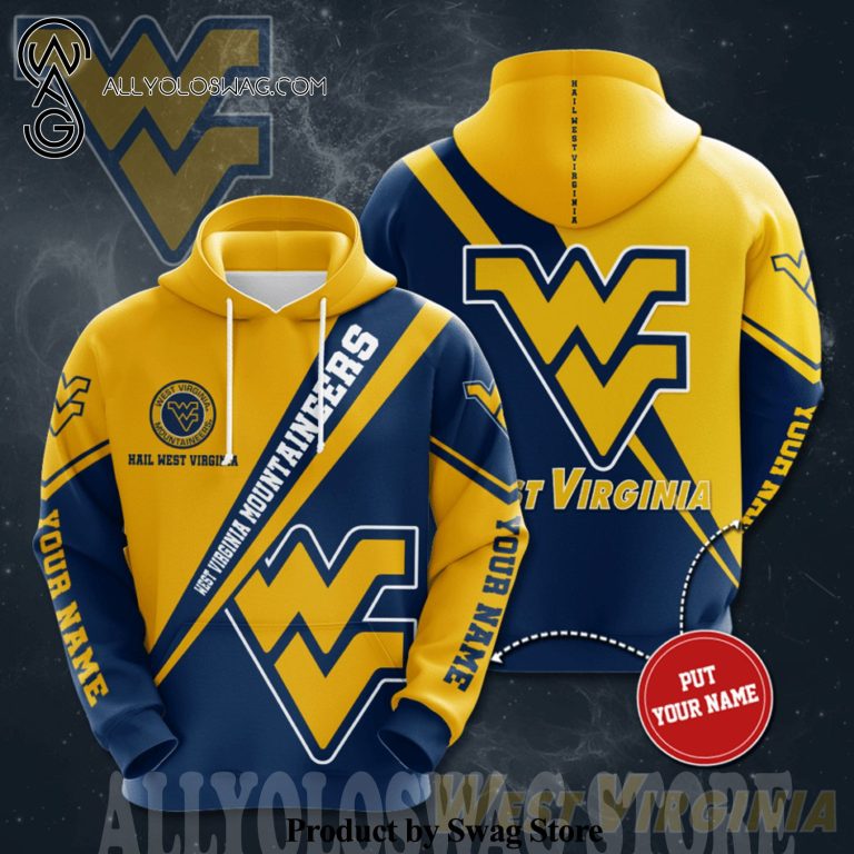 NOTE: [Top-selling] Custom West Virginia Mountaineers Hail West Virginia Full Printing Casual Unisex Hoodie – Navy Yellow