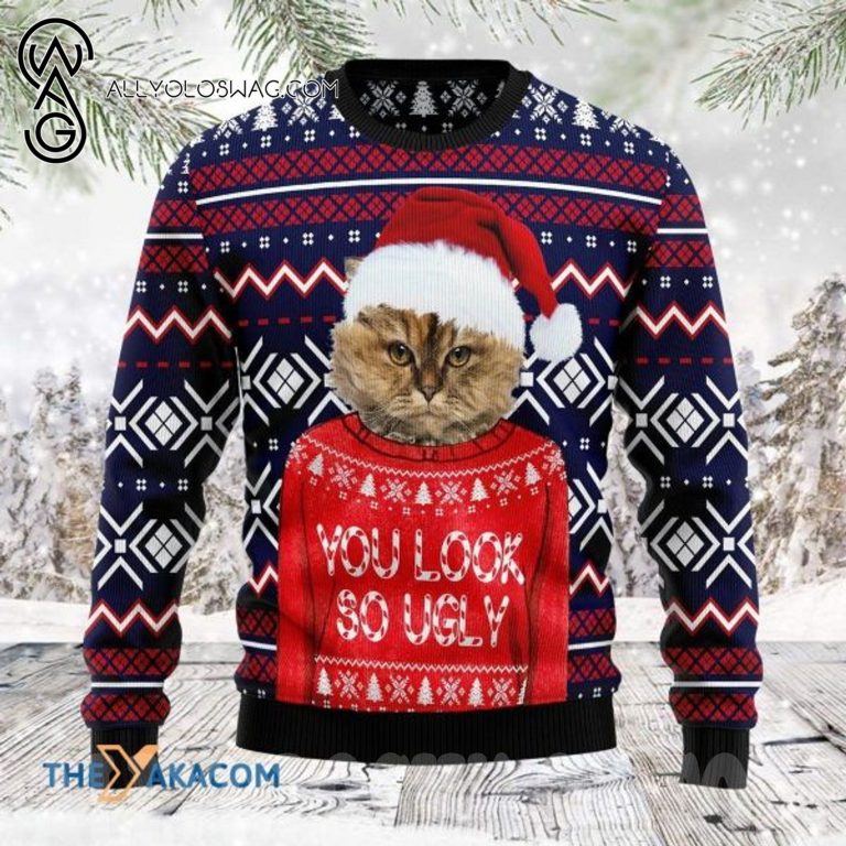 NOTE: [Top-selling] Customize Merry Xmas You Are So Ugly Cat Knitting Pattern Ugly Christmas Sweater