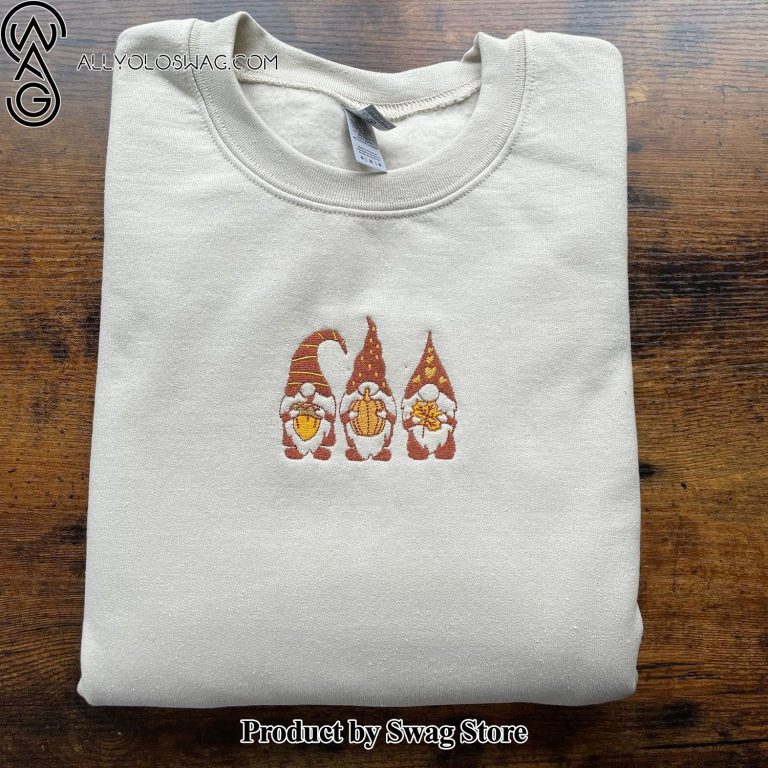 NOTE: [Top-selling] Cute Autumn Gnomes Embroidered Sweatshirt, Halloween Embroidered Sweatshirt