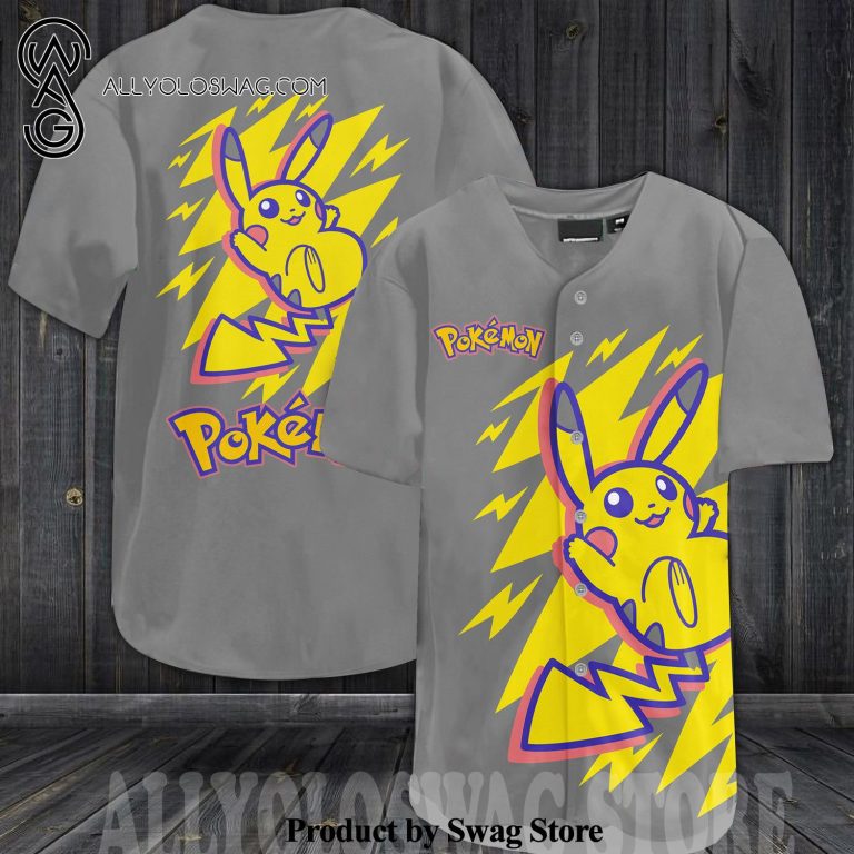 9 Effortlessly Cool Baseball Jersey Outfit Ideas [Top-selling] Cute Pikachu Pokemon All Over Printed Unisex Baseball Jersey – Gray