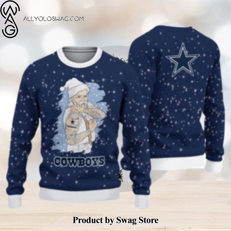 NOTE: [Top-selling] Dallas Cowboys Christmas Santa Claus Tattoo Ugly Christmas Sweater Cute Christmas Gift