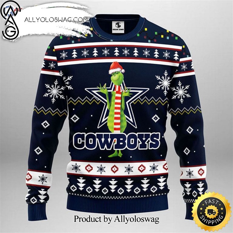 NOTE: [Top-selling] Dallas Cowboys Grinch Show Your Team Spirit Ugly Xmas Wool Knitted Sweater