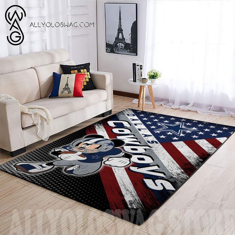 [Top-selling] Dallas Cowboys NFL Team Logo Mickey Us Style Nice Gift Home Decor Rectangle Area Rug 1701