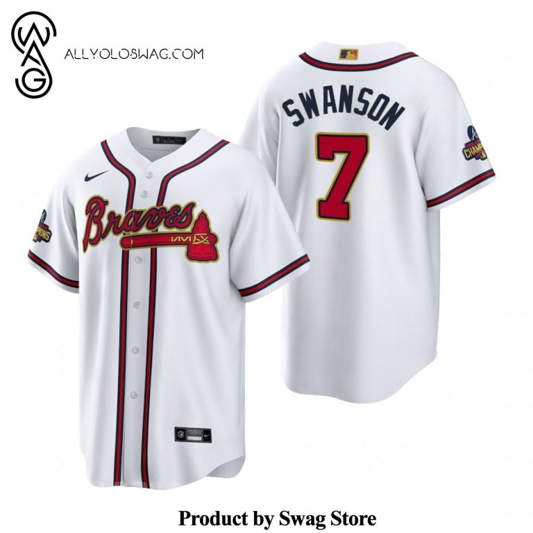 Some details about our product [Top-selling] Dansby Swanson 7 Atlanta Braves White 2022-23 Gold Program 3D Unisex Jersey