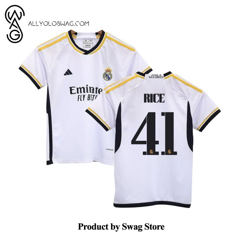 NOTE: [Top-selling] Declan Rice 41 Real Madrid 2023-24 Home 3D Unisex Jersey – White Youth