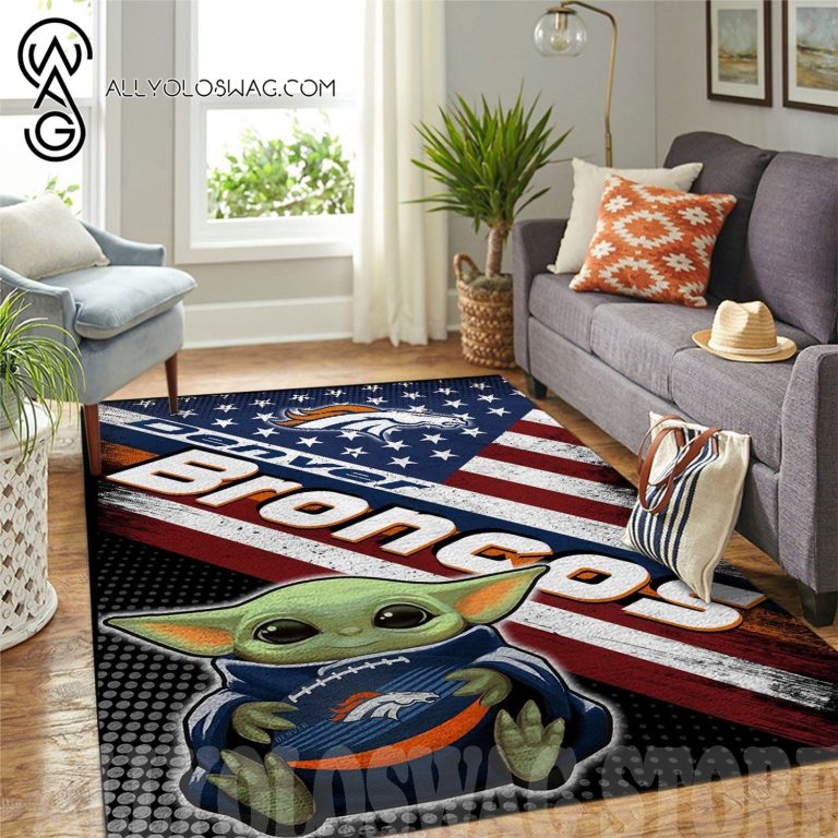 [Top-selling] Denver Broncos NFL Team Logo Baby Yoda Us Style Nice Gift Home Decor Rectangle Area Rug 1639