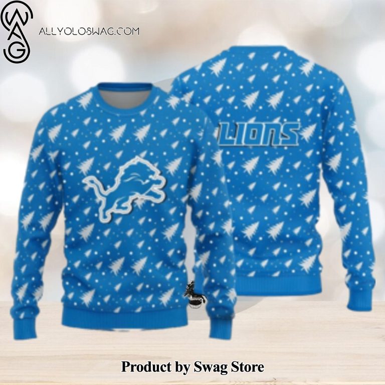 NOTE: [Top-selling] Detroit Lions Christmas Pine Tree Patterns Pattern Knitted Ugly Christmas Sweater AOP Gift For Men And Women