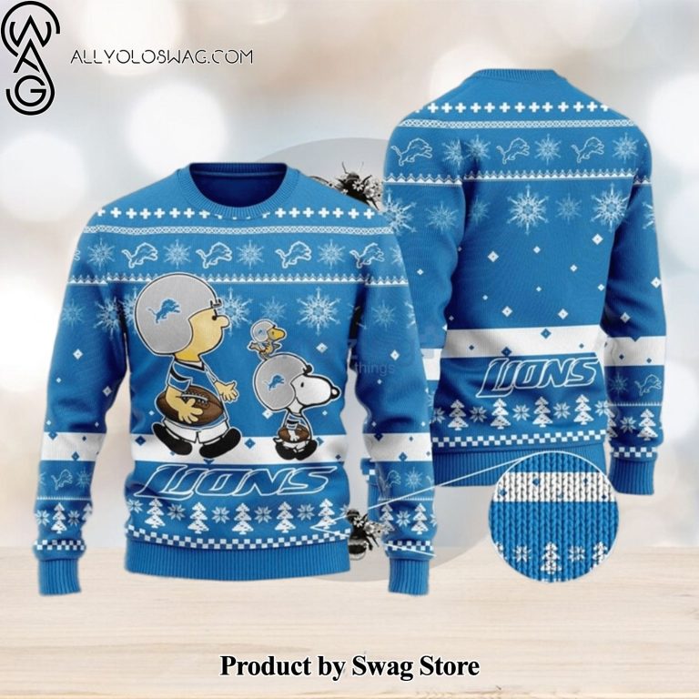 NOTE: [Top-selling] Detroit Lions Funny Charlie Brown Peanuts Snoopy Christmas AOP Sweater
