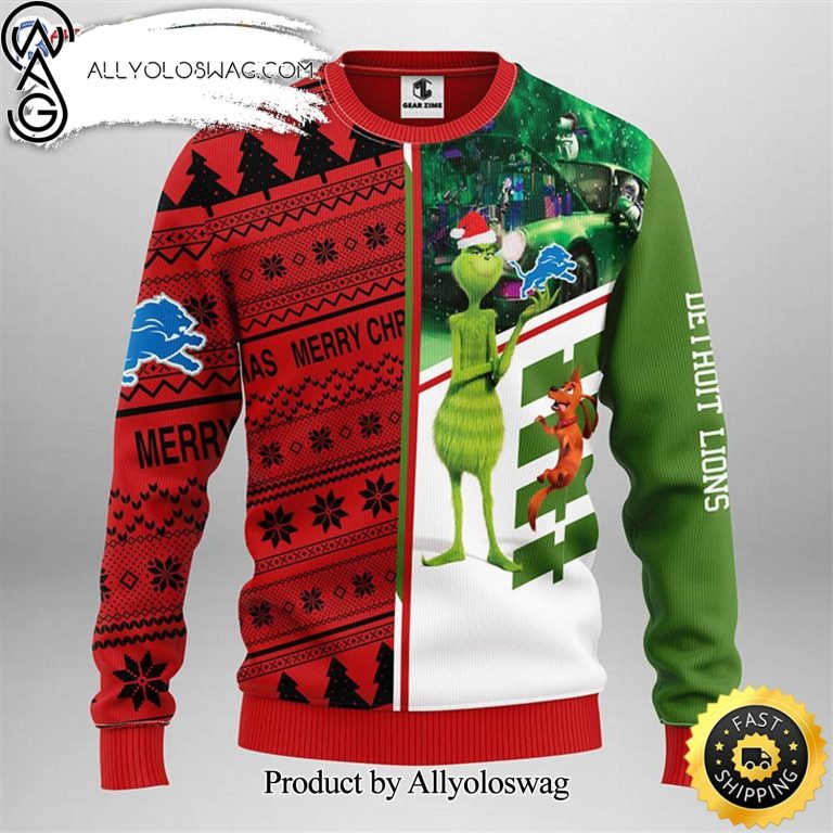 NOTE: [Top-selling] Detroit Lions Grinch And Scooby-Doo Show Your Team Spirit Ugly Christmas Sweater