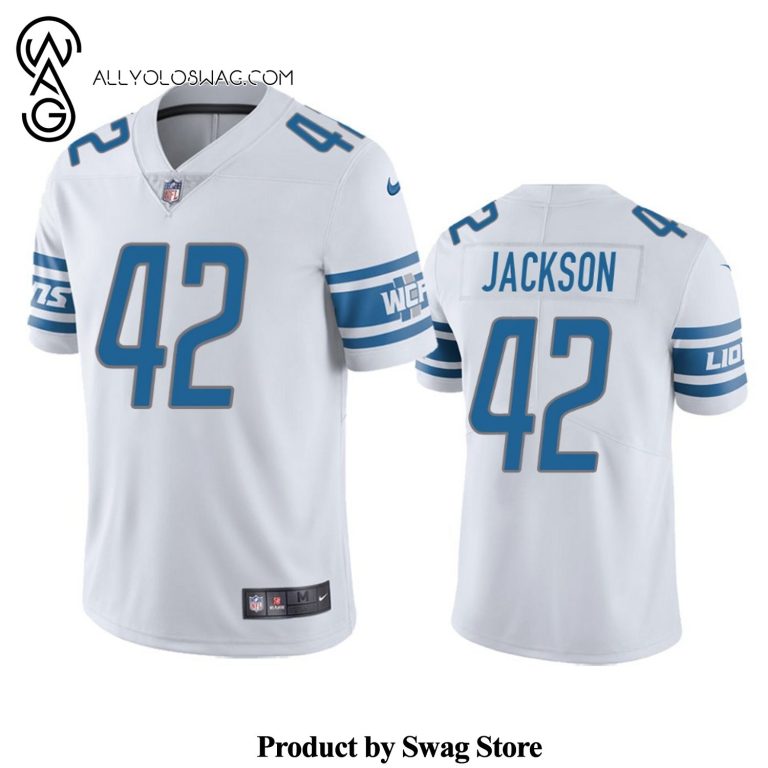 NOTE: [Top-selling] Detroit Lions Justin Jackson 42 White Vapor Limited 3D Unisex Jersey