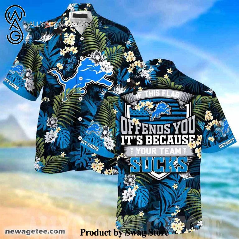[Top-selling] Detroit Lions Nfl This Flag Offends You Best Outfit Hawaiian Shirt was hand-tailored in the early days of fashion. This might happen in the comfort of one’s own home or at a custom tailor’s business. These stores immediately sprang up all across the islands, especially in plantation towns and Honolulu. Newly accessible fabrics from throughout the world were sold at dry goods stores, including printed silk from Japan, raw silk, batik, and rayon from the United States mainland, and cotton cloth for kimonos and yukatas.Hawaiian history had long been shaped by Asian immigrants, and apparel designs reflected this. Short- and long-sleeved shirts, as well as women’s skirts, were created using pre-printed textiles from China and Japan and were based on Asian clothing styles. These bright blouses and dresses were the forerunners of today’s Aloha attire. On the islands, we say “ono” to describe something that is pleasantly cool.