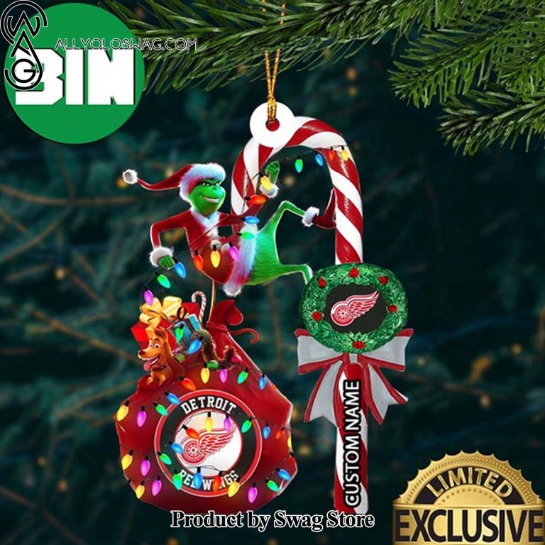 NOTE: [Top-selling] Detroit Red Wings NHL Grinch Candy Cane Custom Name Christmas Tree Ornament