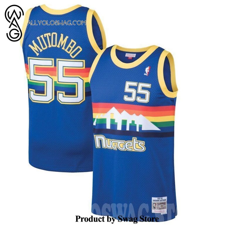 NOTE: [Top-selling] Dikembe Mutombo Denver Nugge Mitchell And Ness 1991-92 Hardwood Classics Swingman 3D Unisex Jersey – Blue
