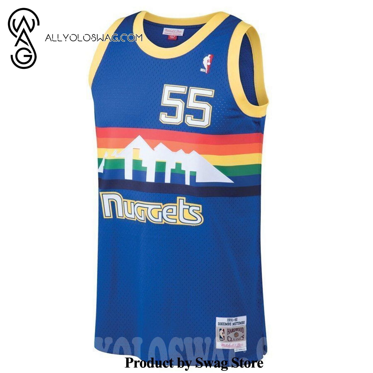 Some details about our product [Top-selling] Dikembe Mutombo Denver Nugge Mitchell And Ness 1991-92 Hardwood Classics Swingman 3D Unisex Jersey – Blue