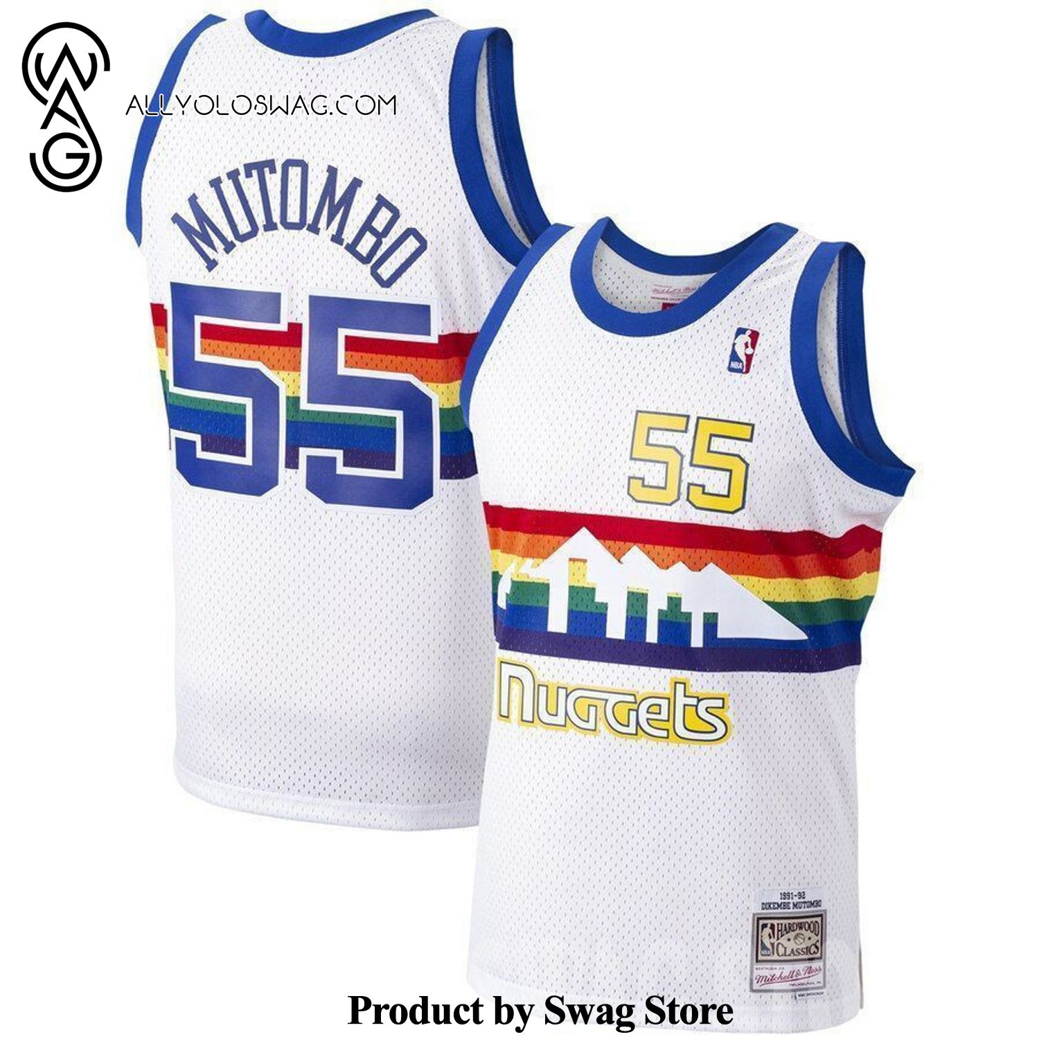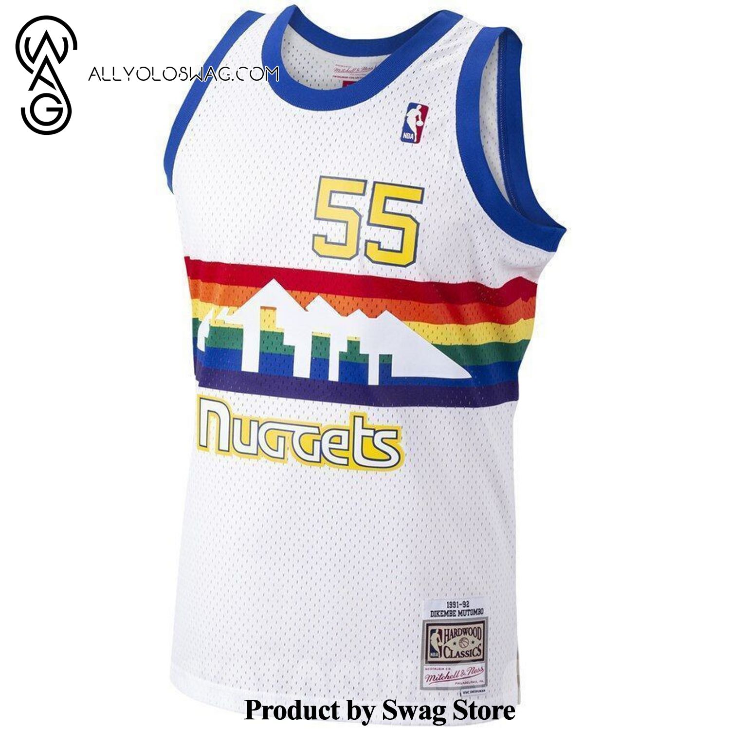 Some details about our product [Top-selling] Dikembe Mutombo Denver Nugge Mitchell And Ness 1991-92 Hardwood Classics Swingman Player 3D Unisex Jersey – White