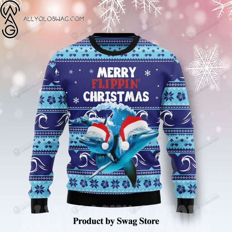 NOTE: [Top-selling] Dolphin Flippin’ Christmas Ugly Christmas Holiday Sweater