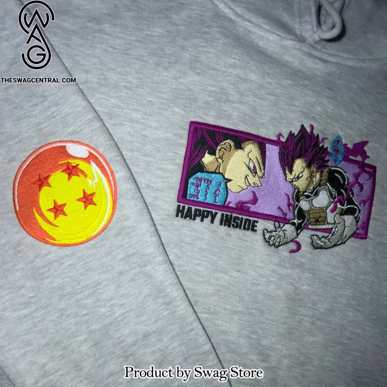 NOTE: [Top-selling] Dragonball Happy Inside Super Saiyan God Vegeta Embroidered Sweatshirt Anime Embroider Sweatshirt Dragonball Hoodie Embroidery