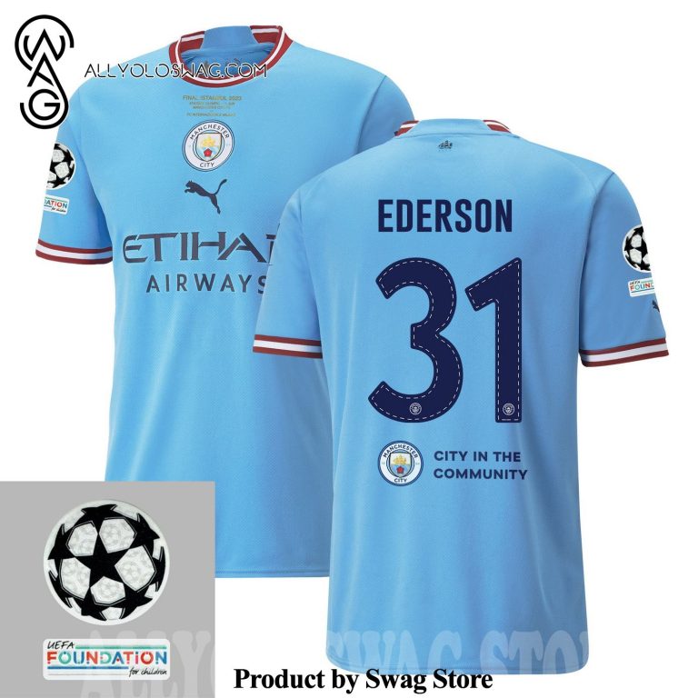 Some details about our product [Top-selling] Ederson 31 Manchester City UEFA 2023 Final Match Details Patch Badge – Home 3D Unisex Jersey