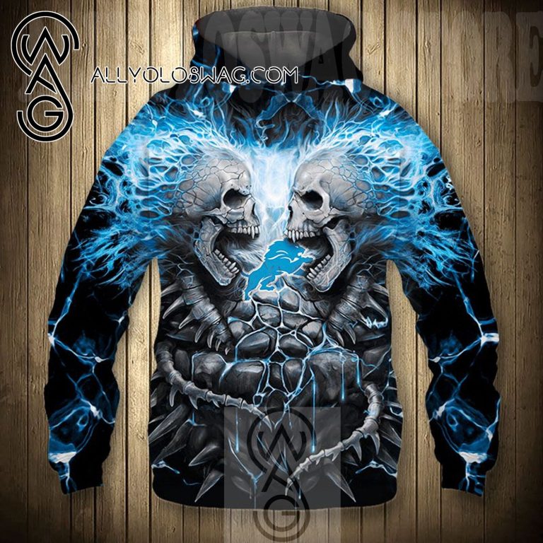 NOTE: [Top-selling] Electric Detroit Lions Skull For Sport Fan All Over Printed Shirt Halloween For Sport Fan Hoodie