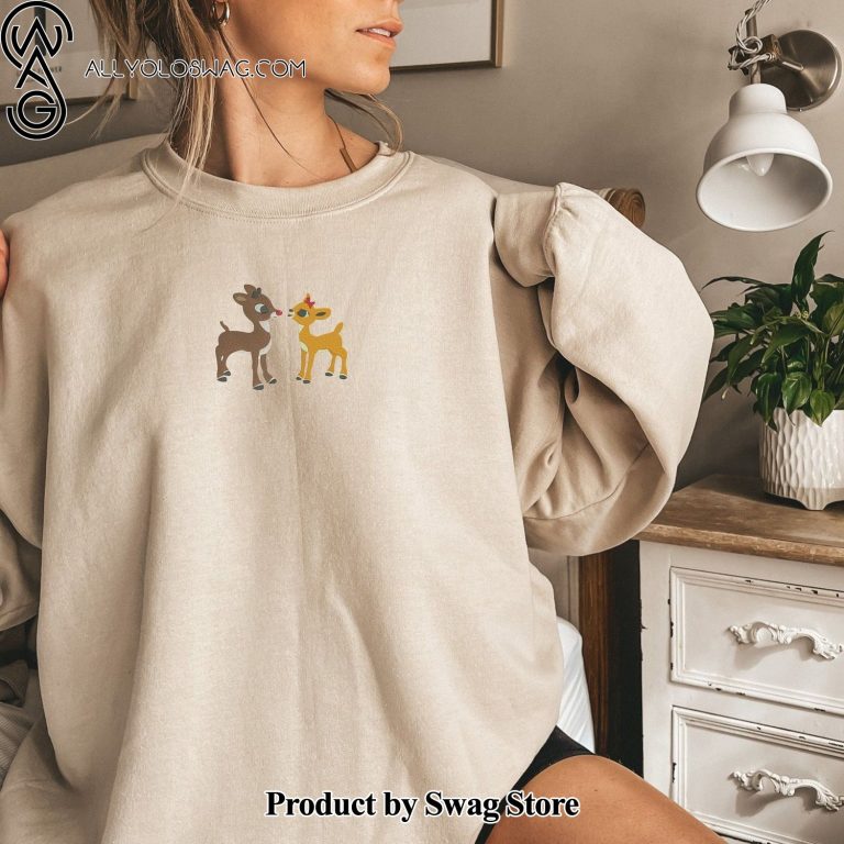 [Top-selling] Embroidered Christmas Sweatshirt, Christmas Crewneck Sweatshirt, Deer Embroidered Tees