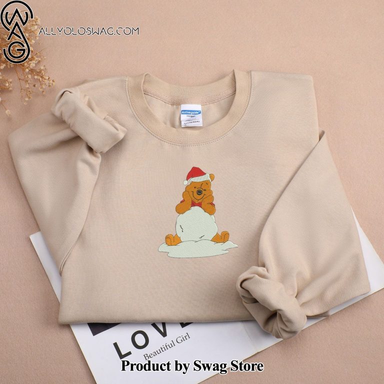 NOTE: [Top-selling] Embroidered Christmas Sweatshirt with Pooh Bear, Merry Christmas Sweatshirt, Merry Christmas,Christmas Gift Idea