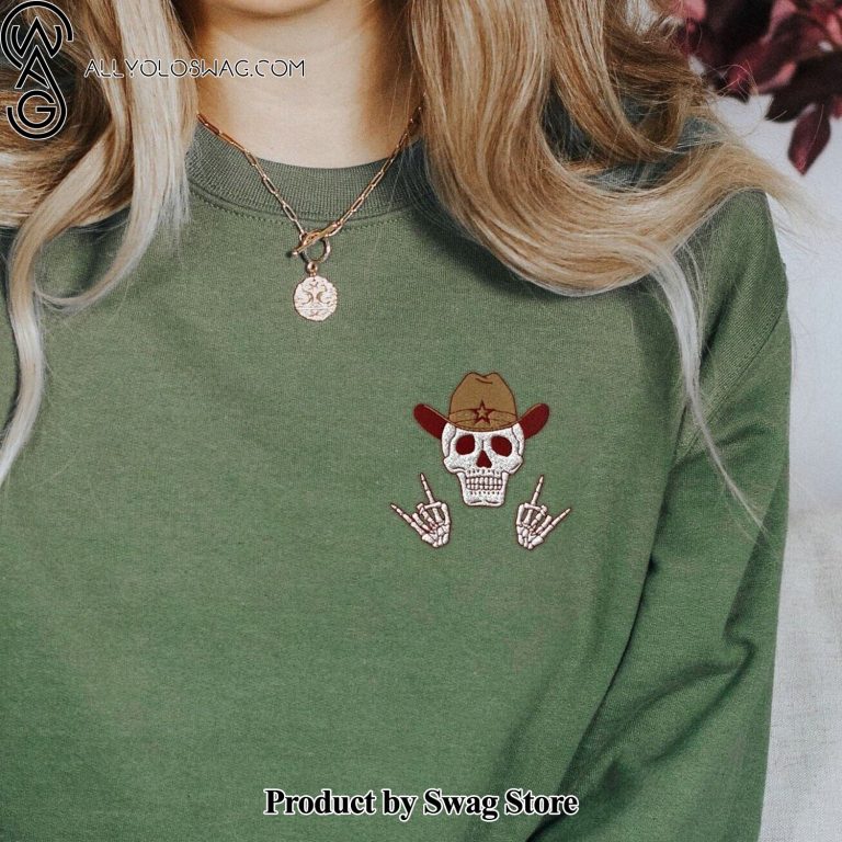 NOTE: [Top-selling] Embroidered Cowboy Skull Western Halloween Sweatshirt, Retro Vintage Spooky Charm