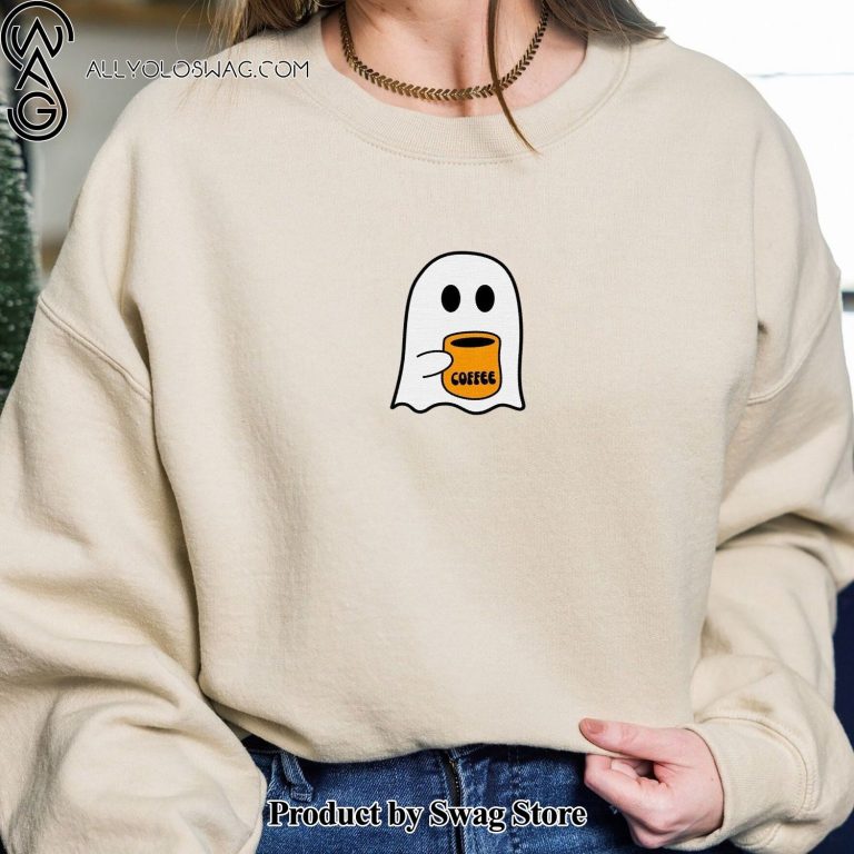 NOTE: [Top-selling] Embroidered Fall Ghost Coffee Pumpkin Sweatshirt