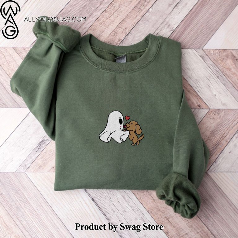 NOTE: [Top-selling] Embroidered Ghost Dog Shirt, Halloween Sweatshirt, Ghost Dogs Sweatshirt, 2023 Happy Halloween
