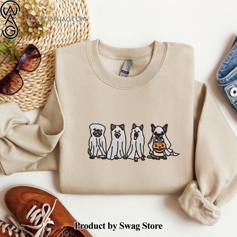 NOTE: [Top-selling] Embroidered Ghost Sweatshirt Embroidered Ghost Dog Sweatshirt Halloween Dog Sweatshirt Dog Lover Gift