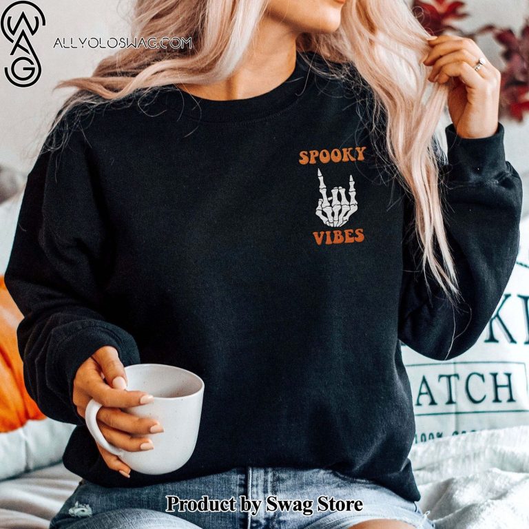 NOTE: [Top-selling] Embroidered Spooky Vibes Sweatshirt, Skeleton Halloween