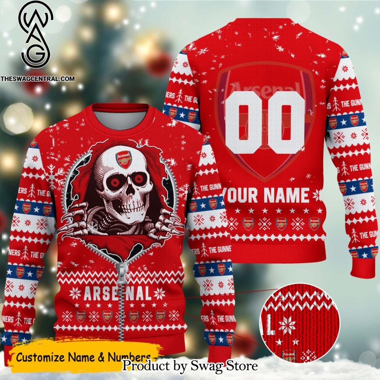 NOTE: [Top-selling] English Premier League Arsenal Snow Custom Name and Number For Christmas Gifts Knitting Pattern Sweater
