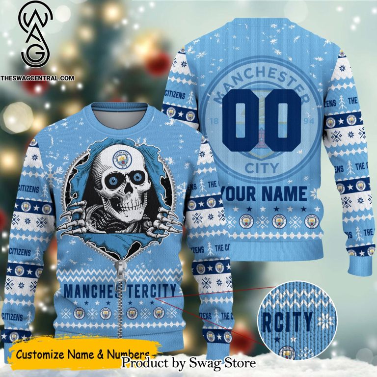 NOTE: [Top-selling] English Premier League Manchester City Snow Custom Name and Number For Christmas Gifts Ugly Xmas Wool Knitted Sweater