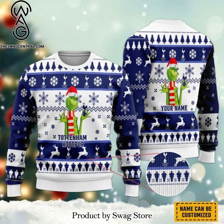 Some details about our [Top-selling] English Premier League Tottenham Hotspur Grinch Custom Name Knitting Pattern Ugly Christmas Holiday Sweater