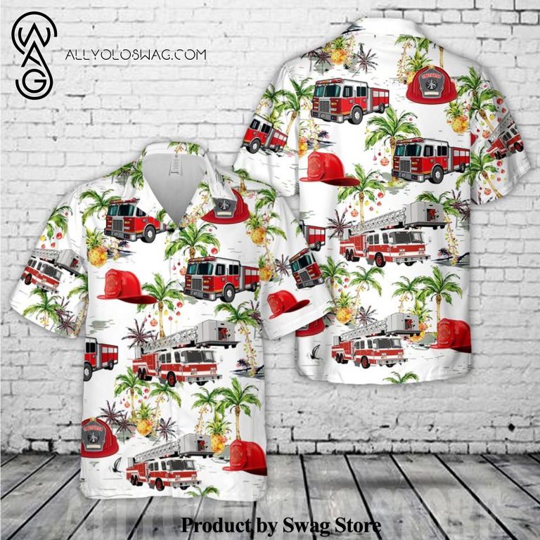[Top-selling] Fire Truck And Helmet Full Printing Summer Sets Hawaiian Shirt