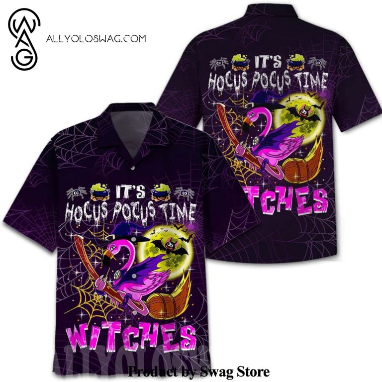 [Top-selling] Flamingo Witch It’s Hocus Pocus Time Witches Print Full Print Hawaiian Shirt