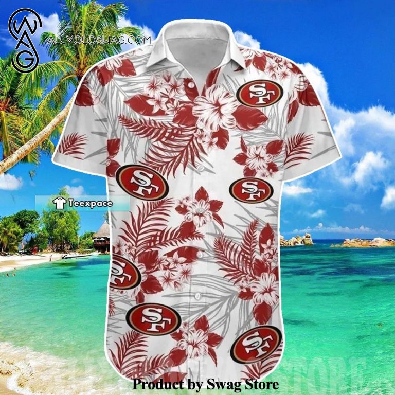 [Top-selling] Floral Red And White San Francisco 49ers Summer Set Hawaiian Shirt San Francisco 49ers Gift was hand-tailored in the early days of fashion. This might happen in the comfort of one’s own home or at a custom tailor’s business. These stores immediately sprang up all across the islands, especially in plantation towns and Honolulu. Newly accessible fabrics from throughout the world were sold at dry goods stores, including printed silk from Japan, raw silk, batik, and rayon from the United States mainland, and cotton cloth for kimonos and yukatas.Hawaiian history had long been shaped by Asian immigrants, and apparel designs reflected this. Short- and long-sleeved shirts, as well as women’s skirts, were created using pre-printed textiles from China and Japan and were based on Asian clothing styles. These bright blouses and dresses were the forerunners of today’s Aloha attire. On the islands, we say “ono” to describe something that is pleasantly cool.