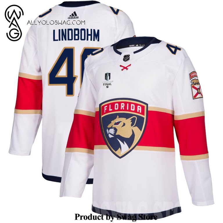 NOTE: [Top-selling] Florida Panthers Petteri Lindbohm 40 Away 2023 Stanley Cup Final Breakaway Men – White