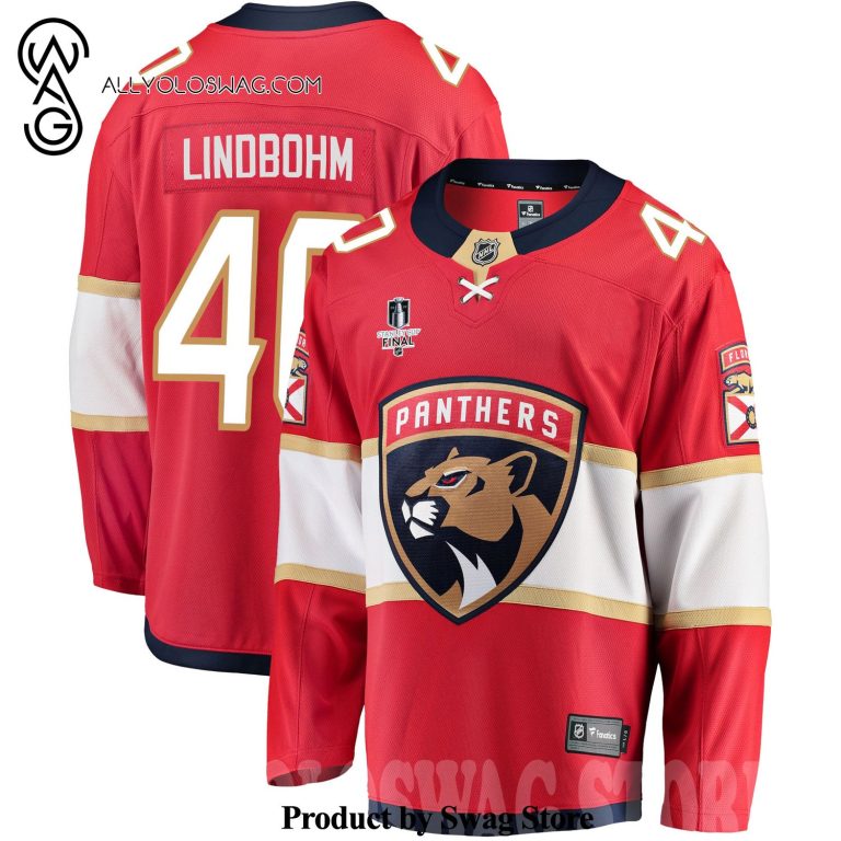 NOTE: [Top-selling] Florida Panthers Petteri Lindbohm 40 Home 2023 Stanley Cup Final Breakaway Men – Red