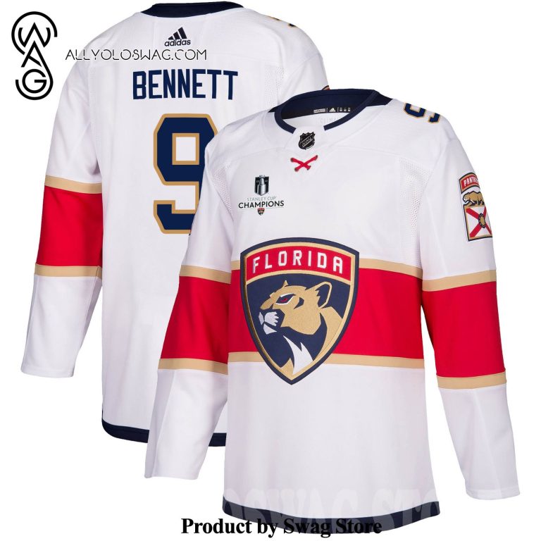 NOTE: [Top-selling] Florida Panthers Sam Bennett 9 Away 2023 Stanley Cup Champions Breakaway Men – White