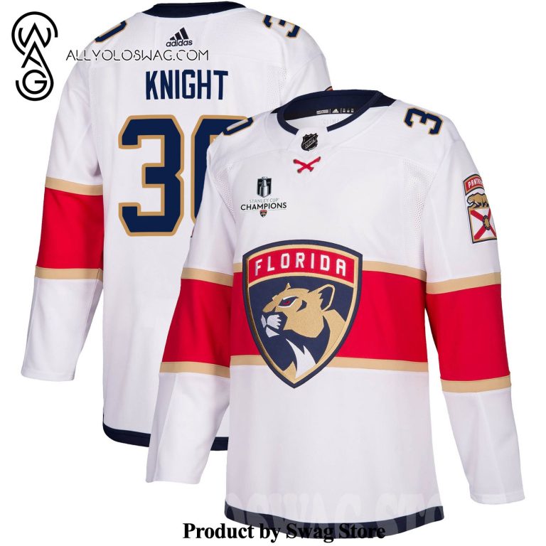 [Top-selling] Florida Panthers Spencer Knight 30 Away 2023 Stanley Cup Champions Breakaway Men – White