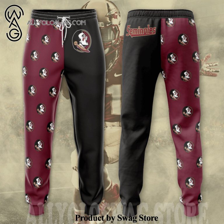 [Top-selling] Florida State Seminoles Logo Full Printing Casual Unisex Sweatpants – Black Garnet