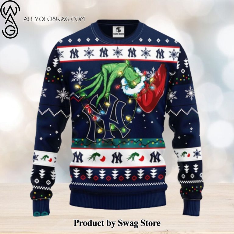 NOTE: [Top-selling] For MLB Fans New York Yankees Grinch Hand Funny Christmas Gift Men And Women Ugly Christmas Sweater