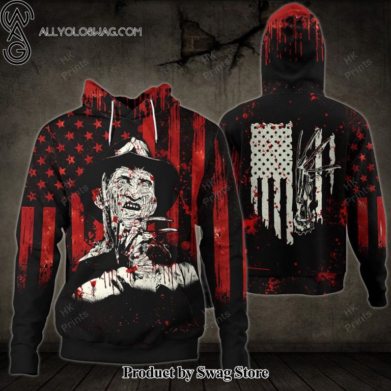 Product description information [Top-selling] Freddy Krueger Bloody American Flag 3D Shirts and Sweatpants